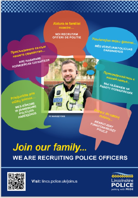 Lincolnshire police is launching its latest recruitment campaign today with a new appeal to people from the east of the county, people with second language skills and people from BAME communities to join the force.